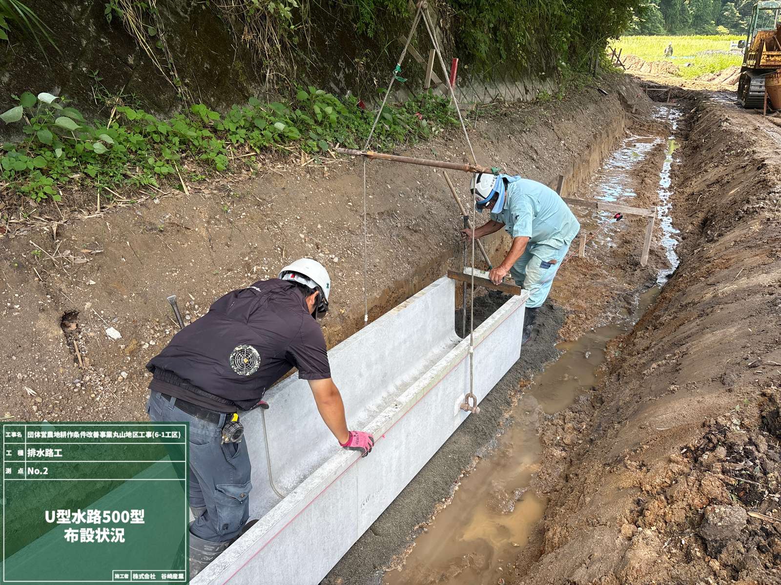 団体営農地耕作条件改善丸山地区 2025 10/01 Before After Before After 古い農業用排水溝を新しいものに取り換える工事を行いました。 水気の多い地盤だった為、少しの雨で土手が崩れたり、ぬかるみが多く重機の作業も大変でしたが、完成の際に地域の方々に感謝の言葉を頂いた時は、嬉しい気持ちと達成感を感じました。夏の暑い時期の工事でしたが、従業員の皆様ありがとうございました。 施工実績